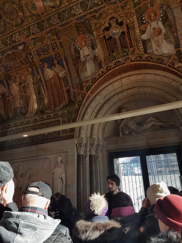 „Serce Berlina Zachodniego” to miejsce, które kojarzy się wszystkim berlińczykom i turystom z kilkoma obiektami:- dworzec ZOO, kino ZOO-PALAST, Hotel Waldorf Astoria, Bikini-Haus, Centrum Europy i jego wodny zegar, czy Kaiser Wilhelm Gedächtniskirche – Katedra Pamięci Cesarza Wilhelma. W ubiegłym roku zakończono pierwszy etap unowocześnienia i zmiany wyglądu tego reprezentacyjnego miejsca w Berlinie. Powstały dwa nowoczesne wysokościowce. Nasz zimowy spacer, podczas którego mogliśmy porozmawiać o historii i przyszłości centrum miasta, w którym mieszkamy, zakończył się zwiedzaniem z przewodnikiem pozostałości cesarskiej katedry. Tym razem było nas ponad 30-ci osób.